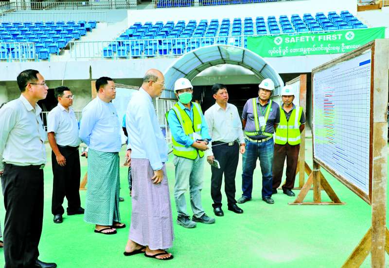 အားကစားနှင့်လူငယ်ရေးရာဝန်ကြီးဌာန ဒုတိယဝန်ကြီး ဦးထိန်လင်း၊ မွန်ပြည်နယ် လူမှုရေးရာဝန်ကြီးနှင့် တာဝန်ရှိသူများသည် ယမန်နေ့နံနက်ပိုင်းက မော်လမြိုင်မြို့ ပြည်နယ်အားကစားဥယျာဉ်စီမံကိန်းတွင် ဆောက်လုပ်လျက်ရှိသော အားကစားရုံနှင့် ဘောလုံးကွင်း၊ အားကစားသမားအိပ်ဆောင်များ၊ စားရိပ်သာနှင့် ဝန်ထမ်းအိမ်ရာများကို ကြည့်ရှုစစ်ဆေးပြီး အားကစားဥယျာဉ်လုံခြုံရေးကိစ္စရပ်များ၊ အားကစားခန်းမအချိန်မီပြီးစီးနိုင်ရေးကိစ္စရပ်များ ဆွေးနွေးမှာကြားကာ ကားရပ်နားရန်နေရာနှင့် ရေကူးကန်ဆောက်လုပ်ရန် လျာထားနေရာတို့ကို ကြည့်ရှုစစ်ဆေးသည်။