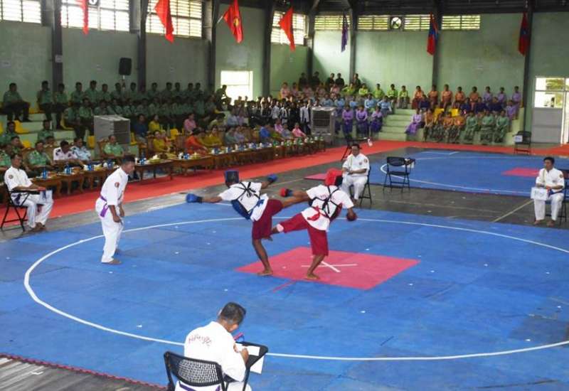၂၀၂၅ ခုနှစ်၊ (၃၂)ကြိမ်မြောက် တပ်မတော်ကာကွယ်ရေးဦးစီးချုပ်ဒိုင်း တပ်မတော် (ကြည်း၊ ရေ၊ လေ) (အမျိုးသား/အမျိုးသမီး) မြန်မာ့သိုင်းပြိုင်ပွဲဖွင့်ပွဲကို ယနေ့မွန်းလွဲပိုင်းတွင် ရန်ကုန်တိုင်းစစ်ဌာနချုပ် နဝဒေးအားကစားရုံ၌ပြုလုပ်ရာ တပ်မတော်ကာကွယ်ရေးဦးစီးချုပ်ကိုယ်စား တိုင်းမှူး ဗိုလ်ချုပ်ပြည့်စုံလင်းနှင့် တာဝန်ရှိသူများ၊ အရာရှိ၊ စစ်သည်၊ မိသားစုများ၊ ဒိုင်အဖွဲ့ဝင်များနှင့် ပြိုင်ပွဲဝင်အားကစားသမားများ တက်ရောက်ကြသည်။