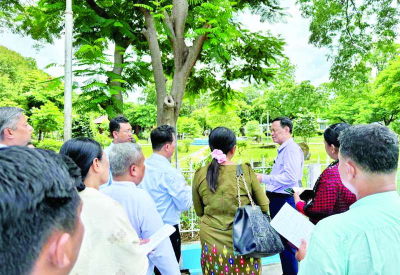 ပညာရေးဝန်ကြီးဌာန ဒုတိယဝန်ကြီး ဒေါက်တာဇော်မြင့်သည် တာဝန်ရှိသူများနှင့်အတူ ယနေ့နံနက်ပိုင်းတွင် မန္တလေးတက္ကသိုလ် ရာပြည့်သဘင်ကျင်းပရေး ပြင်ဆင်ဆောင်ရွက်ထားရှိမှု၊ မန္တလေးတက္ကသိုလ်ဥပဓိရုပ်ကောင်းမွန်ရေး ပြင်ဆင်ဆောင်ရွက်ထားရှိမှု၊ ဖွင့်ပွဲအခမ်းအနားကျင်းပမည့် နေရာများ သန့်ရှင်းသာယာလှပရေး ဆောင်ရွက်ထားရှိမှုနှင့် ပြခန်းများ ခင်းကျင်းပြသရန် စီစဉ်ထားရှိမှုအခြေအနေများကို လှည့်လည်ကြည့်ရှုသည်။