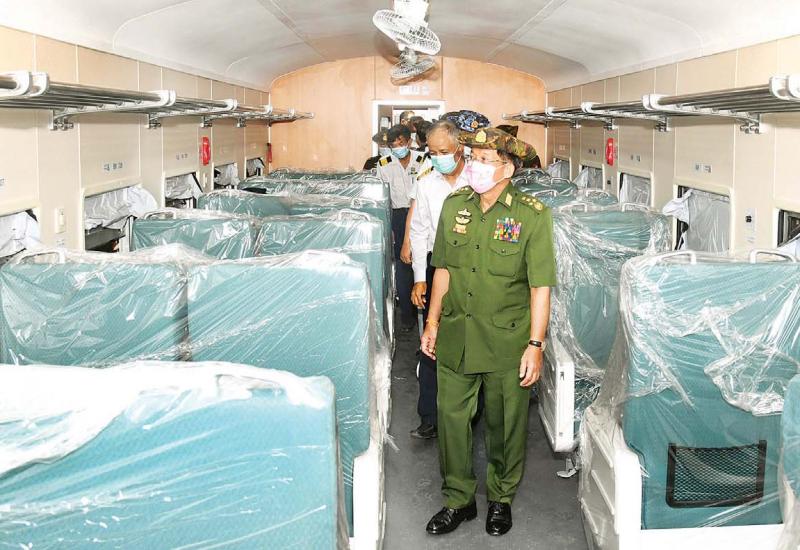 နိုင်ငံတော်စီမံအုပ်ချုပ်ရေးကောင်စီဥက္ကဋ္ဌ တပ်မတော်ကာကွယ်ရေးဦးစီးချုပ် ဗိုလ်ချုပ်မှူးကြီး မင်းအောင်လှိုင်သည် နိုင်ငံတော်စီမံအုပ်ချုပ်ရေးကောင်စီဝင်များ ဖြစ်ကြသည့် ဗိုလ်ချုပ်ကြီး တင်အောင်စန်း၊ ဒုတိယဗိုလ်ချုပ်ကြီး မိုးမြင့်ထွန်း၊ ဒုတိယ ဗိုလ်ချုပ်ကြီး စိုးထွဋ်၊ ပြည်ထောင်စု ဝန်ကြီးများ ဖြစ်ကြသည့် ဦးအောင်နိုင်ဦး၊ ဒေါက်တာ ညွန့်ဖေ၊ ဒေါက်တာ သက်ခိုင်ဝင်း၊ ဦးမောင်မောင်အုန်း၊ မန္တလေးတိုင်းဒေသကြီး စီမံအုပ်ချုပ်ရေးကောင်စီဥက္ကဋ္ဌ ဦးမောင်ကို၊ ကာကွယ်ရေးဦးစီးချုပ်(ရေ) ဗိုလ်ချုပ်ကြီး မိုးအောင်၊ ကာကွယ်ရေးဦးစီးချုပ်ရုံးမှ တပ်မတော် အရာရှိကြီးများ၊ အလယ်ပိုင်းတိုင်း စစ်ဌာနချုပ်တိုင်းမှူး ဗိုလ်ချုပ် ကိုကိုဦးနှင့် တာဝန်ရှိသူများ လိုက်ပါ၍ ယနေ့နံနက်ပိုင်းတွင် မန္တလေးတိုင်းဒေသကြီး၊ အမရပူရရှိ ပို့ဆောင်ရေးနှင့် ဆက်သွယ်ရေးဝန်ကြီးဌာန မြန်မာ့မီးရထား လူစီးတွဲနှင့် ကုန်တွဲစက်ရုံ၊ မြစ်ငယ်သို့ သွားရောက် ကြည့်ရှုစစ်ဆေးသည်။