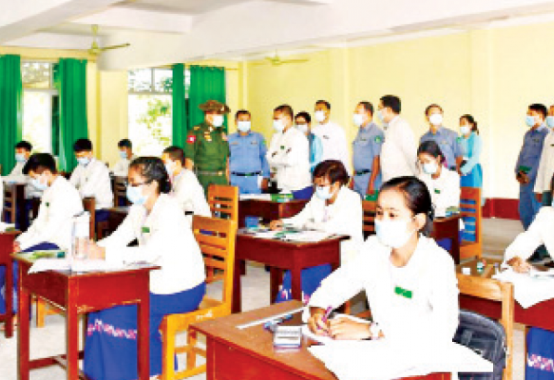 နယ်စပ်ရေးရာဝန်ကြီးဌာန ပြည်ထောင်စု ဝန်ကြီး ဒုတိယဗိုလ်ချုပ်ကြီး ထွန်းထွန်းနောင် သည် ယမန်နေ့ နံနက်ပိုင်းတွင် စစ်ကိုင်း မြို့နယ် အုန်းတောကျေးရွာရှိ ပြည်ထောင်စု တိုင်းရင်းသားလူငယ်များ စွမ်းရည်ဖွံ့ဖြိုးရေး ဒီဂရီကောလိပ်(စစ်ကိုင်း)သို့ ရောက်ရှိပြီး နောက်ဆုံးနှစ် ကျောင်းသား ကျောင်းသူများ စာသင်ခန်းအတွင်း ကိုဗစ်-၁၉ စည်းကမ်းချက် များနှင့်အညီ သင်ကြားနေမှုကို လှည့်လည် ကြည့်ရှုသည်။