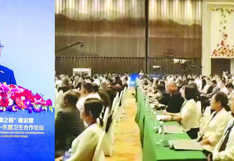 (၅) ကြိမ်မြောက် တရုတ်-အာဆီယံကျန်းမာရေး ဖိုရမ်ဖွင့်ပွဲကို တရုတ်ပြည်သူ့သမ္မတနိုင်ငံ ကွမ်ရှီးကျွမ့် ကိုယ်ပိုင်အုပ်ချုပ်ခွင့်ရဒေသနန်နင်းမြို့ Wuxiang Resort ၌ စက်တင်ဘာ ၁၆ ရက်က ကျင်းပရာ ကျန်းမာရေးဝန်ကြီးဌာန ပြည်ထောင်စုဝန်ကြီး ဒေါက်တာသက်ခိုင်ဝင်း ဦးဆောင်သည့် ကိုယ်စားလှယ်အဖွဲ့ တက်ရောက်ခဲ့သည်။