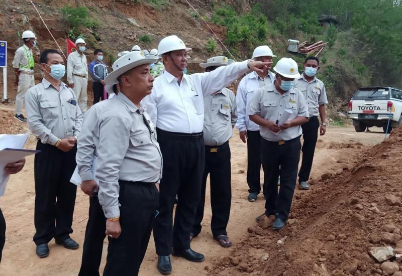 ဆောက်လုပ်ရေးဝန်ကြီးဌာန ပြည်ထောင်စုဝန်ကြီး ဦးရွှေလေးသည် ဧပြီ (၂၅) ရက် နံနက်ပိုင်းတွင် တာချီလိတ် - မိုင်းဆတ်လမ်း ကွန်ကရစ်ခင်းခြင်းလုပ်ငန်းများ ဆောင်ရွက်ပြီးစီးမှုတို့ကို လမ်းတစ်လျှောက်ကြည့်ရှုစစ်ဆေးပြီး လမ်းစခန်းရှင်းလင်းဆောင်တွင် လမ်းဦးစီးဌာန ညွှန်ကြားရေးမှူး (မြို့ပြ) ဦးရဲလင်း က မိုင်းဆတ် - တာချီလိတ်လမ်း (0.0 Km မှ 97.76 Km အတွင်း) ကွန်ကရစ်လမ်း 13.09 Km၊ ကတ္တရာလမ်း 11.30 Km၊ ကျောက်လမ်း 52.818 Km၊ အမာခံလမ်း 15.96 Km ၊ မြေလမ်း 4.525 Km ၊ စုစုပေါင်း 97.76 Km အား ဘဏ္ဍာရေး နှစ်အလိုက် လုပ်ငန်းဆောင်ရွက်ထားရှိမှုနှင့် ဆက်လက်ဆောင်ရွက်မည့် လုပ်ငန်းအစီအစဉ်များကို မြေပုံကားချပ်ဖြင့် တင်ပြသည်။