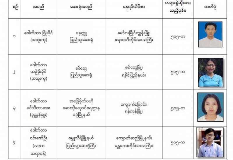 နိုင်ငံတော်၏ အုပ်ချုပ်မှုယန္တရားပျက်ပြားစေရန် ရည်ရွယ်ချက်ဖြင့် နိုင်ငံ့ ဝန်ထမ်းနှင့် ကျန်းမာရေးဝန်ထမ်းများအား CDM လှုပ်ရှားမှုများတွင် ပါဝင်လာစေရန် လှုံ့ဆော်ခြင်း၊ ၎င်းတို့ကိုယ်တိုင် CDM လှုပ်ရှားမှုများတွင် ပါဝင်လုပ်ဆောင်ခြင်း၊ CDM လှုပ်ရှားမှုအပေါ် ထောက်ခံအားပေးခြင်း၊ CRPH မတရားအသင်းအား ထောက်ခံ အားပေးခြင်းတို့ကို ဆောင်ရွက်လျက်ရှိသည့် အောက်ဖော်ပြပါ ဆရာဝန်များအား ရာဇသတ်ကြီးပုဒ်မ ၅၀၅-က ဖြင့် အမှုဖွင့်အရေးယူဆောင်ရွက်ထားပြီး ဖြစ်ပါသည်။