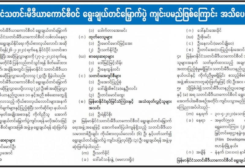 မြန်မာနိုင်ငံသတင်းမီဒီယာကောင်စီဝင် ရွေးချယ်တင်မြှောက်ပွဲ ကျင်းပမည်ဖြစ်ကြောင်း အသိပေးကြေညာ