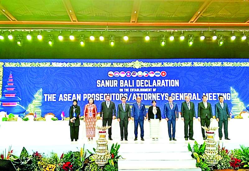 အင်ဒိုနီးရှားနိုင်ငံ ရှေ့နေချုပ် H.E. Mr. Burthanuddin ၏ ဖိတ်ကြားချက်အရ ပြည်ထောင်စုဝန်ကြီးနှင့် ပြည်ထောင်စုရှေ့နေချုပ် ဒေါက်တာသီတာဦး ဦးဆောင်သော မြန်မာကိုယ်စားလှယ်အဖွဲ့သည် အင်ဒိုနီးရှားနိုင်ငံ ဘာလီမြို့၌ စက်တင်ဘာ ၁၅ ရက်မှ ၁၆ ရက်အထိ ကျင်းပသည့် အာဆီယံရှေ့နေချုပ်များ အစည်းအဝေးတည်ထောင်ခြင်းဆိုင်ရာ ကြေညာချက်လက်မှတ်ရေးထိုးပွဲအခမ်းအနားသို့ တက်ရောက်သည်။