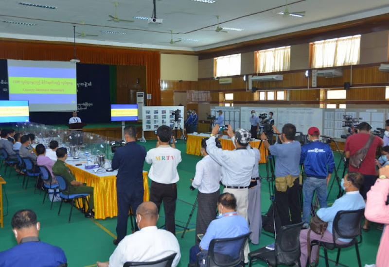 နိုင်ငံတော်စီမံအုပ်ချုပ်ရေးကောင်စီ၊ သတင်းထုတ်ပြန်ရေးအဖွဲ့၏ ၄/၂၀၂၁ ကြိမ်မြောက် သတင်းစာရှင်းလင်းပွဲကို ယနေ့မွန်းလွဲပိုင်းတွင် ပြန်ကြားရေးဝန်ကြီး ဌာန၌ကျင်းပ ပြုလုပ်ပြီး နိုင်ငံတော်စီမံအုပ်ချုပ်ရေးကောင်စီ၊ သတင်းထုတ်ပြန်ရေး အဖွဲ့ခေါင်းဆောင် ဗိုလ်ချုပ် ဇော်မင်းထွန်း၊ ပြည်ထောင်စုရွေးကောက်ပွဲ ကော်မရှင် အဖွဲ့ဝင် ဦးခင်မောင်ဦးနှင့် ဌာနဆိုင်ရာသတင်းထုတ်ပြန်ရေးအဖွဲ့ ကိုယ်စားလှယ် များက သတင်းမီဒီယာများ၏ သိရှိလိုသည့်မေးမြန်းမှုများကို ပြန်လည်ဖြေကြား သည်။