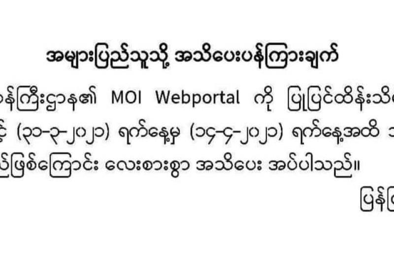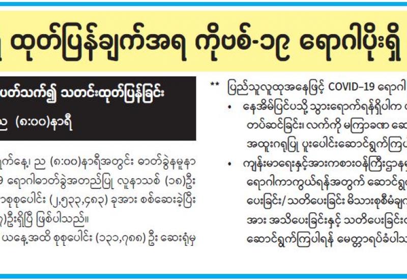 (၂၀၂၁ ခုနှစ်၊ မတ်လ (၂၇)ရက်နေ့ ည(၇:၀၀)နာရီအချိန် ထုတ်ပြန်ချက်)
