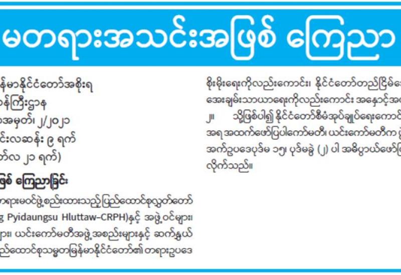 ကိုရီးယားသမ္မတနိုင်ငံ၏တရားဝင်ဖွံ့ဖြိုးမှုအကူအညီ ချေးငွေတို့ဖြင့် အကောင်အထည်ဖော် ဆောင်ရွက် လျက်ရှိ သည့် စီမံကိန်းများ၏လက်ရှိဆောင်ရွက်နေမှု အခြေအနေနှင့် ရှေ့ဆက်လက်ဆောင်ရွက်မည့် အစီအစဉ် တို့နှင့် စပ်လျဉ်းသည့် ညှိနှိုင်းအစည်း အဝေးကို ယနေ့ မွန်းလွဲပိုင်းက ရင်းနှီးမြှုပ်နှံမှုနှင့် နိုင်ငံခြားစီးပွား ဆက်သွယ်ရေး ဝန်ကြီးဌာန၌ ကျင်းပ သည်။
