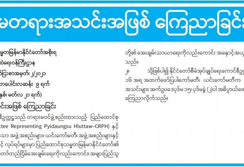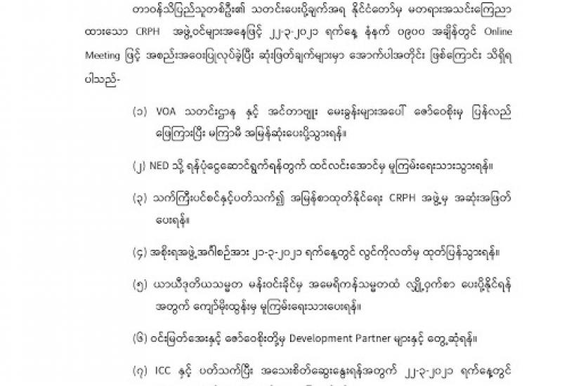 (၂၀၂၁ ခုနှစ်၊ မတ်လ (၂၃)ရက်နေ့၊ နံနက်(၁၀:၃၀)နာရီအချိန် ထုတ်ပြန်ချက်)