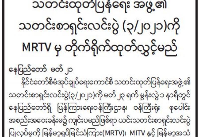 (၂၀၂၁ ခုနှစ်၊ မတ်လ (၂၂)ရက်နေ့ ည(၇:၀၀)နာရီအချိန် ထုတ်ပြန်ချက်)