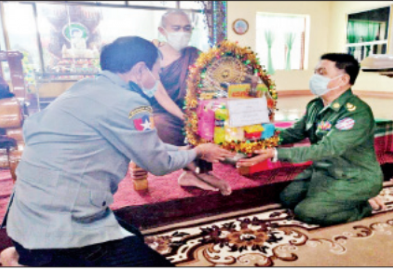 ဘုန်းတော်ကြီးကျောင်းများ၊ သာသနာ့နွယ်ဝင် သီလရှင်ကျောင်းများနှင့် ဘာသာရေးကျောင်းများ တွင် ဆွမ်းအဆင်ပြေစေရေးအတွက် တပ်မတော် (ကြည်း၊ ရေ၊ လေ) အရာရှိ စစ်သည် အရာထမ်း၊ အမှုထမ်းများက တိုင်းစစ်ဌာနချုပ်များအလိုက် မြို့နယ်အသီးသီး၌ ဆွမ်းဆန်တော်၊ ဆီ၊ ဆား၊ ပဲ အမည်လေးမျိုးနှင့် လှူဖွယ်ပစ္စည်းများ လှူဒါန်းခြင်း၊ နေ့ဆွမ်း ဆက်ကပ်လှူဒါန်းခြင်းနှင့် ကျန်းမာရေး စစ်ဆေးမှုများကို ဆောင်ရွက်လျက်ရှိသည်။