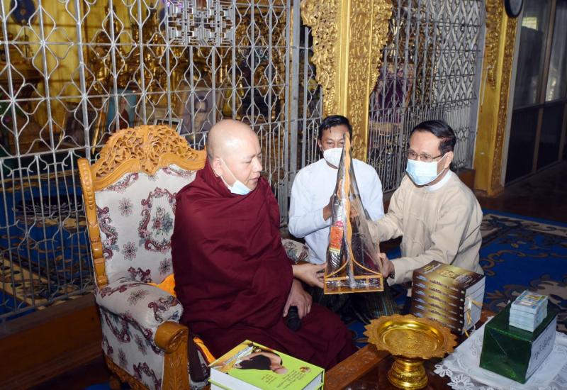 သာသနာရေးနှင့်ယဉ်ကျေးမှုဝန်ကြီးဌာန ပြည်ထောင်စုဝန်ကြီး ဦးကိုကိုသည် တာဝန်ရှိ သူများနှင့်အတူ ယနေ့ နံနက် ၉ နာရီခွဲတွင် ရန်ကုန်တိုင်းဒေသကြီး၊ မရမ်း ကုန်းမြို့နယ်ရှိ ကလေးဝ တောရ နာဂလိုဏ်ဂူပရိယတ္တိစာသင်တိုက်သို့ရောက်ရှိပြီး ကလေးဝ တောရ ပဓာန နာယက ဆရာတော် ဘဒ္ဒန္တဝိလာသဂ္ဂ အရှင်သူမြတ်ထံ ထာဝရ ပစ္စည်းလေးပါး ဆွမ်း ပဒေသာပင် ငွေကျပ်သိန်း ၅၀ စိုက်ထူ လှူဒါန်းသည်။ ထို့နောက် ပြည်ထောင်စုဝန်ကြီးက ထေရဝါဒဗုဒ္ဓသာသနာတော် တည်တံ့ပြန့်ပွား ရေး အတွက် ကြိုးပမ်းဆောင်ရွက်သွားမည်ဖြစ်ပါကြောင်း၊ ဆရာတော်ကြီးများက ဓမ္မာနုဂ္ဂဟ ဖြင့် ဆောင်ရွက်သကဲ့သို့ ဒါယကာများမှလည်း ပစ္စယာနုဂ္ဂဟဖြင့် ထောက်ပံ့လှူဒါန်းရေးဆောင် ရွက်သွားမည်ဖြစ်ပါကြောင်း၊ နိုင်ငံတော်စီမံအုပ်ချုပ်ရေး ကောင်စီ နိုင်ငံတော် တာဝန်ယူပြီး ရွှေတိဂုံစေတီတော်မြတ်ကြီးနှင့် တစ်နိုင်ငံလုံးရှိ ဘုရား၊ စေတီ၊ ပုထိုးများကို ဖေဖော်ဝါရီ ၈ ရက် တွင် တစ်နိုင်ငံလုံး၌ ပြည်သူများဖူးမျှော် ကြည်ညိုနိုင် ရန် ဆောင်ရွက်ခဲ့ကြောင်း၊ အကြိမ် (၆၀) မြောက် မဟာဘွဲ့နှင်းသဘင်အခမ်းအနားနှင့် အဋ္ဌမ အကြိမ် နိုင်ငံတော် သံဃမဟာနာယ က အဖွဲ့ (၄၇) ပါးစုံညီ ဆဋ္ဌမအစည်းအဝေးနှင့် သတ္တမ အစည်းအဝေးကို အောင်မြင်စွာ ကျင်းပပြီး စီးခဲ့ပါကြောင်း၊ သာသနာတော်ဆိုင်ရာ ဘွဲ့တံဆိပ်တော်များ လှူဒါန်းဆက်ကပ်ပွဲ အခမ်းအနား ကို တပေါင်းလပြည့်နေ့ မတ် (၂၇)ရက်တွင် ကျင်းပသွားမည်ဖြစ်ကြောင်း၊ ဘုန်းတော်ကြီး သင်ပညာရေးကျောင်းများကို အထူးအလေး ထား ထောက်ပံ့ ဆောင်ရွက်သွား မည်ဖြစ်ကြောင်း သာသနာရေးဆိုင်ရာများ လျှောက်ထား သည်။ မွန်းလွဲပိုင်းတွင် ပြည်ထောင်စုဝန်ကြီးနှင့် အဖွဲ့သည် အမျိုးသား စာကြည့်တိုက် (ရန်ကုန်)သို့ ရောက်ရှိရာ အစည်းအဝေးခန်းမ၌ အမျိုးသားစာကြည့်တိုက် (ရန်ကုန်)၏ သမိုင်းကြောင်းနှင့် လုပ်ငန်းဆောင်ရွက်မှုအခြေအနေများကို သမိုင်းသုတေသန နှင့် အမျိုးသား စာကြည့်တိုက်ဦးစီးဌာန ညွှန်ကြားရေးမှူးချုပ် က Power Point ဖြင့် ရှင်းလင်း တင်ပြသည်။