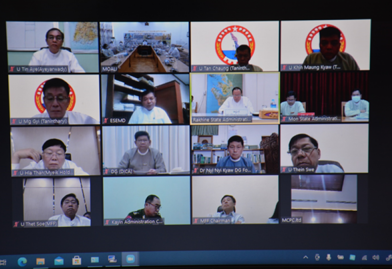 မြန်မာနိုင်ငံ၏ ရေလုပ်ငန်းဖွံ့ဖြိုးတိုးတက်ရေး အတွက် Fish Processing စီးပွားရေး ဇုန်များကို နယ်စပ်တွင် ထူထောင်နိုင်ရေး လုပ်ငန်းညှိနှိုင်းအစည်းအဝေးကို ယနေ့ နံနက်ပိုင်း က စိုက်ပျိုးရေး၊ မွေးမြူရေးနှင့် ဆည်မြောင်းဝန်ကြီးဌာန အစည်းအဝေးခန်းမ၌ ကိုဗစ်-၁၉ ကျန်းမာရေးဆိုင်ရာ ညွှန်ကြားချက်များနှင့်အညီ ကျင်းပသည်။