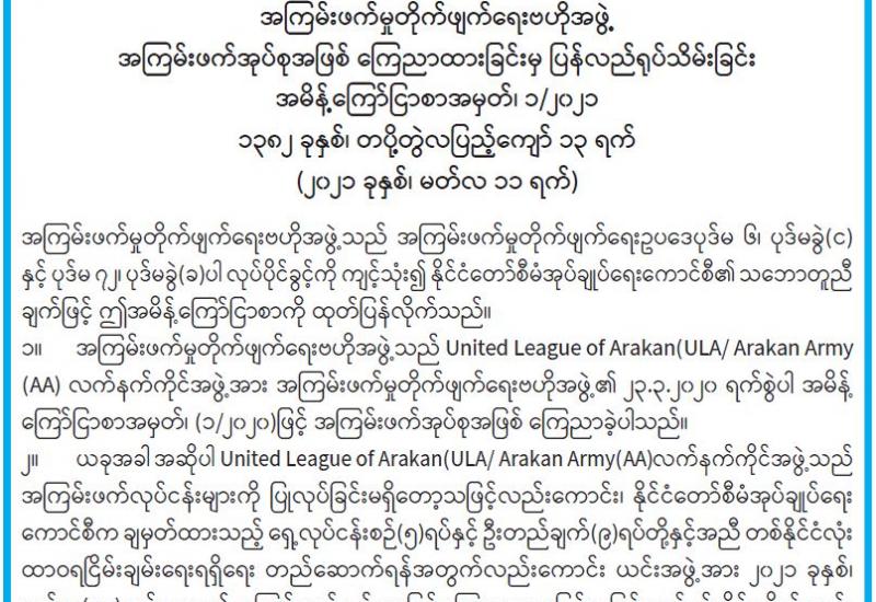 (၂၀၂၁ ခုနှစ်၊ မတ်လ (၁၀)ရက်နေ့ မွန်းလွဲ (၂:၀၀)နာရီအချိန် ထုတ်ပြန်ချက်)