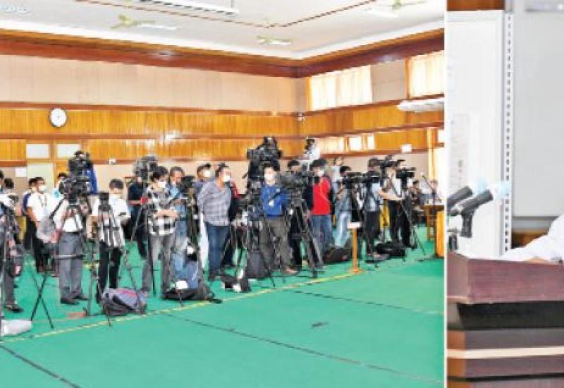 နိုင်ငံတော်စီမံအုပ်ချုပ်ရေးကောင်စီ၊ သတင်းထုတ်ပြန်ရေးအဖွဲ့ခေါင်းဆောင် ဗိုလ်မှူးချုပ် ဇော်မင်းထွန်းက လက်ရှိနိုင်ငံရေးဖြစ်ပေါ်ပြောင်းလဲမှု အခြေအနေများ နှင့် စပ်လျဉ်း၍ သတင်းစာရှင်းလင်းပွဲကို ယနေ့ မွန်းလွဲပိုင်းတွင် ပြန်ကြားရေး ဝန်ကြီးဌာန၌ကျင်းပပြုလုပ်ပြီးသတင်းမီဒီယာများ၏ သိရှိလိုသည့်မေးမြန်းမှု များ ကိုပြန်လည်ဖြေကြားသည်။