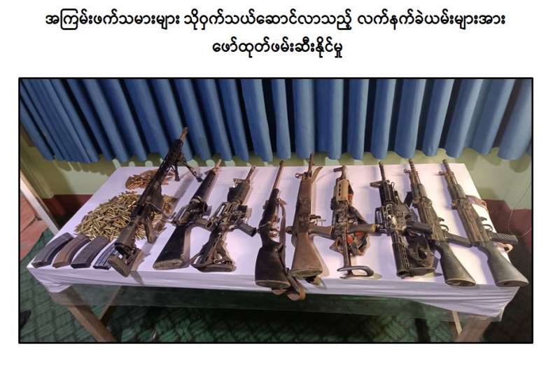 NUG နှင့် CRPH တို့၏ ညွှန်ကြားမှုဖြင့် PDF အမည်ခံအကြမ်းဖက်သမားများသည် အကြမ်းဖက်လုပ်ရပ်များ လုပ်ဆောင်ရန်အတွက် လက်နက်/ခဲယမ်းများနှင့် ဆက်စပ်ပစ္စည်းများကို ပုံစံမျိုးစုံ၊ နည်းလမ်းမျိုးစုံဖြင့် သယ်ဆောင်၍ ၎င်းတို့ရောက်ရှိခိုအောင်းရာ နေရာများနှင့် အနီးဝန်းကျင်တွင် လက်နက်ဖြင့်ခြိမ်းခြောက် အကြမ်းဖက်ခြင်း၊ ဆက်ကြေးကောက်ခံခြင်း၊ ၎င်းတို့နှင့် အလိုမတူသူများအား ဖမ်းဆီးသတ်ဖြတ်ခြင်း စသည့်အဖျက်အမှောင့်လုပ်ရပ်များနှင့် နယ်မြေတည်ငြိမ်အေးချမ်းမှုကို ပျက်ပြားစေသော လုပ်ရပ်များကို လုပ်ဆောင်လျက်ရှိသည်။