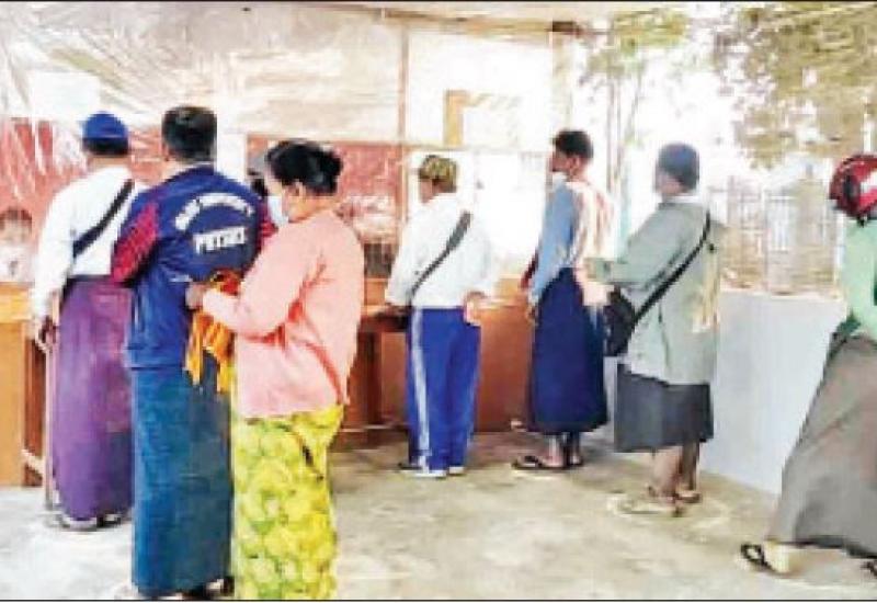 ရှမ်းပြည်နယ် (အရှေ့ပိုင်း) မိုင်းယောင်းမြို့နယ်မြန်မာ့စီးပွားရေး ဘဏ်၌ ပင်စင်စားပြည်သူများအား ယနေ့နံနက်ပိုင်းမှစတင်၍ ပင်စင်လစာငွေများကို ပုံမှန်ထုတ် ပေးလျက်ရှိသည်။ ပင်စင်လစာငွေများ ထုတ်ပေး ရာတွင် ကိုဗစ်-၁၉ ရောဂါ ကာကွယ်ရေးအတွက် ကျန်းမာရေးနှင့် အားကစားဝန်ကြီးဌာန၏ လမ်းညွှန်ချက်များအတိုင်း ဘဏ်အတွင်းသို့ ဝင်ရောက်ရာတွင် နှာခေါင်းစည်းကို စနစ်တကျ တပ်ဆင်စေခြင်း၊ လက်သန့် ဆေးရည်ဖြင့် လက်ဆေးစေခြင်း နှင့် ပင်စင်လစာငွေများထုတ်ပေး ရာ၌ စနစ်တကျဖြစ်စေရေး အတွက် အလှည့်ကျဖြင့် ထုတ်ပေး လျက်ရှိကြောင်း မြန်မာ့စီးပွားရေး ဘဏ်မန်နေဂျာ ဦးဝင်းကျော်ထွေး ထံမှသိရသည်။