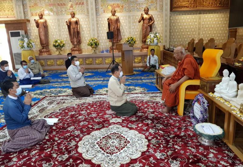 ရခိုင်ပြည်နယ်၌ သာသနာတော်ဆိုင်ရာ ဘွဲ့တံဆိပ်တော် ဆက်ကပ်လှူဒါန်းခြင်း နှင့် ထပ်ဆင့်ဂုဏ်ပြုပူဇော်ပွဲ အခမ်းအနား အောင်မြင်စွာကျင်းပနိုင်ရေး ဦးစီးကော်မတီ နှင့် လုပ်ငန်းကော်မတီများလုပ်ငန်းညှိနှိုင်း အစည်းအဝေး(၁/၂၀၂၁)ကို ယနေ့ မွန်းလွဲ ၂ နာရီက ပြည်နယ်စီမံအုပ်ချုပ်ရေးကောင်စီ ရုံး အစည်းအဝေးခန်းမ၌ ကျင်းပသည်။
