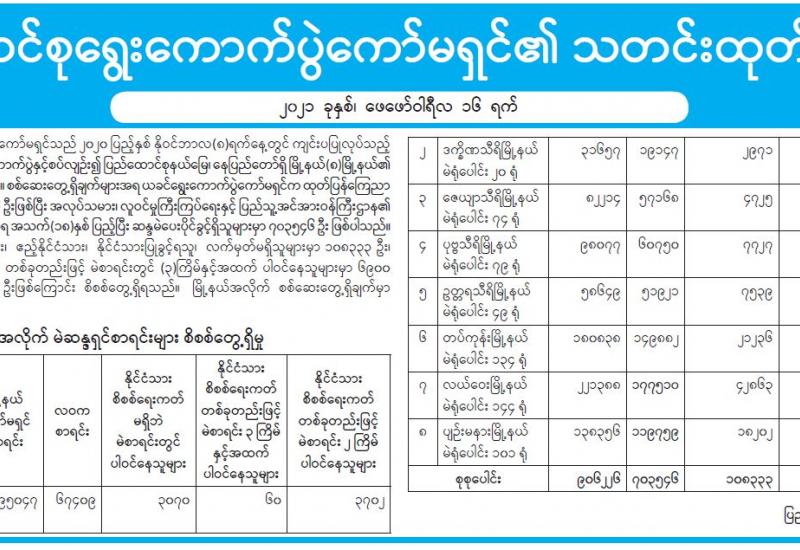 (၂၀၂၁ ခုနှစ်၊ ဖေဖော်ဝါရီလ (၁၇)ရက်နေ့ ည(၇:၀၀)နာရီအချိန် ထုတ်ပြန်ချက်)