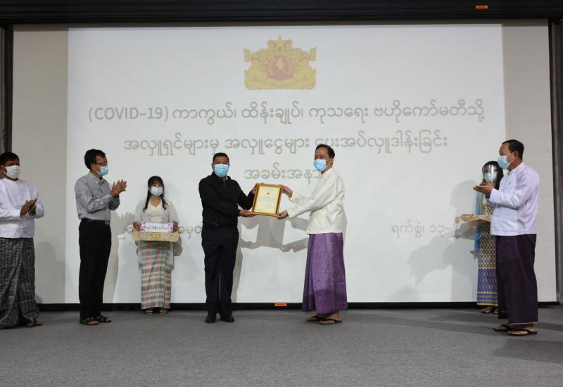 ကိုဗစ်-၁၉ ကာကွယ်၊ ထိန်းချုပ်၊ ကုသရေးလုပ်ငန်းများတွင် အသုံးပြုရန် အလှူငွေ ပေးအပ်လှူဒါန်း အခမ်းအနားကို ယနေ့နံနက်ပိုင်းတွင် ကျန်းမာရေးနှင့် အားကစားဝန်ကြီးဌာန၌ ကျင်းပသည်။