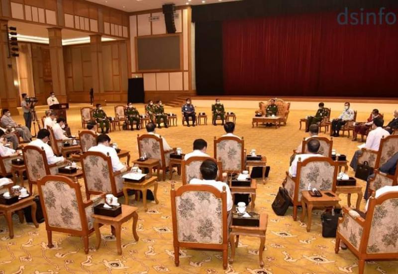 နိုင်ငံတော်စီမံအုပ်ချုပ်ရေးကောင်စီ ဥက္ကဋ္ဌ တပ်မတော်ကာကွယ်ရေးဦးစီးချုပ် ဗိုလ်ချုပ် မှူးကြီး မင်းအောင်လှိုင်သည် ယနေ့ မွန်းလွဲပိုင်းတွင် နေပြည်တော်ရှိ နိုင်ငံတော်သမ္မတ အိမ်တော် အစည်းအဝေးခန်းမ၌ ပြည်ထောင်စုဝန်ကြီးများ၊ ပြည်ထောင်စုအဆင့် အဖွဲ့ အစည်းများမှ တာဝန်ရှိသူများနှင့် တွေ့ဆုံသည်။