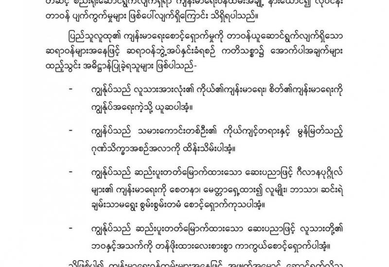 တပ်မတော်သတင်းမှန်ပြန်ကြားရေးအဖွဲ့က တိုင်းရင်းသားပြည်သူများ တပ်မတော် ဆေးရုံများတွင် ဆေးသကုနိုင်ကြောင်း ထုတ်ပြန်ချက် တစ်ရပ်ကို ယနေ့ရက်စွဲဖြင့် ထုတ်ပြန်လိုက်ကြောင်း သိရသည်။