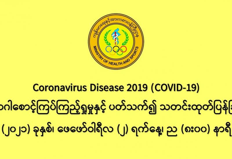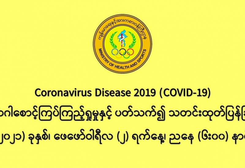 ကျန်းမာရေးနှင့်အားကစားဝန်ကြီးဌာန၏ ထုတ်ပြန်ချက်များအရ မြန်မာနိုင်ငံ တစ်ဝန်း ပိုးတွေ့ လူနာ တွေ့ရှိမှု တဖြည်းဖြည်း ကျဆင်း လာသည်ကိုတွေ့ရ သည်။ ဖေဖော်ဝါရီ ၂ ရက်နေ့ ည ၈ နာရီ ထုတ်ပြန်ချက်တွင် ပိုးတွေ့ လူနာ ၃၁၀ ဦး ရှိသည်။ ပိုးတွေ့ရှိမှုများအနေဖြင့် ၄၀၀ ကျော်မှ ၃၀၀ ကျော်၊ ၂၀၀ ကျော်စသည်ဖြင့် တဖြည်းဖြည်း အကျဘက်သို့ ဦးတည်လာနေခြင်းဖြစ်သည်။