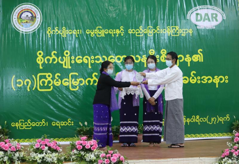 စိုက်ပျိုးရေးသုတေသနဦးစီးဌာန၏ (၁၇)နှစ်ပြည့် အထိမ်းအမှတ် အခမ်းအနားကို ယနေ့ နံနက်ပိုင်းက နေပြည်တော် ရေဆင်းစိုက်ပျိုးရေး သုတေသနဦးစီးဌာန နဝရတ်ခန်းမတွင် ကျင်းပရာ ပြည်ထောင်စုဝန်ကြီး ဒေါက်တာအောင်သူ တက်ရောက်မိန့်ခွန်းပြောကြားပြီး ဂုဏ်ပြုဆုများ ပေးအပ် ချီးမြှင့်သည်။