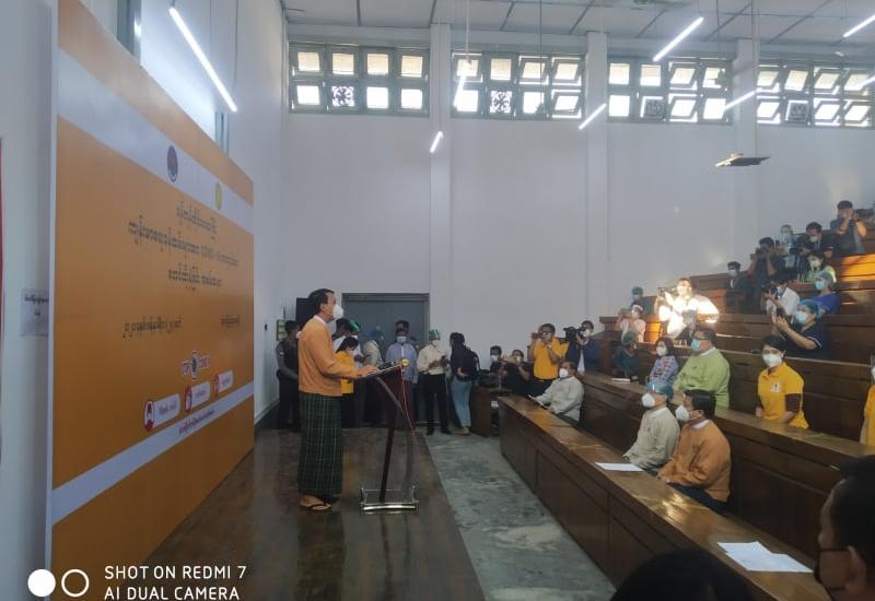 မြန်မာနိုင်ငံတွင် ကိုဗစ်-၁၉ ကာကွယ်ဆေးစတင်ထိုးနှံခြင်း အခမ်းအနားကို လသာမြို့နယ်၊ ရန်ကုန်ပြည်သူ့ဆေးရုံကြီး၊ သူနာပြုသင်တန်းကျောင်းခန်းမ၌ ယနေ့နံနက် (၈)နာရီ အချိန် က ကျင်းပဆောင်ရွက်ခဲ့သည်။