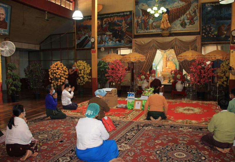 ပဲခူးမြို့ သီရိမင်္ဂလာကြခတ်ဝိုင်း ပရိယတ္တိစာသင်တိုက် ဆရာတော်ကြီးမှ ကိုဗစ်-၁၉ ရောဂါ ကာကွယ်ဆေး ဝယ်ယူရန် အလှူငွေပေးအပ်လှူဒါန်းခြင်း အခမ်းအနားကို ယနေ့ နံနက် ၉ နာရီခွဲအချိန်က အဆိုပါ ကျောင်းတိုက်တွင် ကျင်းပခဲ့သည်။