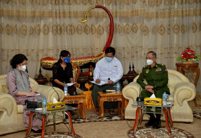 ကာကွယ်ရေးဝန်ကြီးဌာန ပြည်ထောင်စုဝန်ကြီး ဒုတိယဗိုလ်ချုပ်ကြီး စိန်ဝင်းသည် ကုလသမဂ္ဂ ဒုက္ခသည်များဆိုင်ရာ မဟာမင်းကြီးရုံး (UNHCR) ၏ မြန်မာနိုင်ငံဆိုင်ရာ ဌာနေကိုယ်စားလှယ် မစ္စ ဂျောင်ဟေခယောင်း အား ယနေ့မွန်းလွဲ ၁၂ နာရီခွဲတွင် ပြည်ထောင်စုဝန်ကြီးရုံး ဧည့်ခန်းမ၌ လက်ခံတွေ့ဆုံသည်။