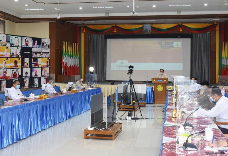 ရခိုင်ပြည်နယ် ငြိမ်းချမ်းရေးနှင့် လူမှုစီးပွားဘဝ ဖွံ့ဖြိုးတိုးတက်ရေးဆိုင်ရာ ကိစ္စရပ်များ ပူးပေါင်း ဆောင်ရွက်ရေး ညှိနှိုင်းအစည်းအဝေးကို ယမန်နေ့ နံနက်ပိုင်းတွင် ဗီဒီယိုကွန်ဖရင့်စနစ်ဖြင့် ကျင်းပသည်။