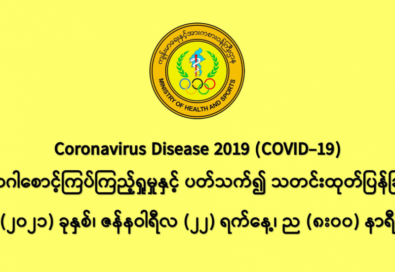 (၂၁-၁-၂၀၂၁) ရက်နေ့၊ ည (၈:၀၀) နာရီမှ (၂၂-၁-၂၀၂၁) ရက်နေ့၊ ည (၈:၀၀) နာရီ အတွင်း ဓာတ်ခွဲနမူနာ စုစုပေါင်း (၁၇,၆၉၉)ခုအားစစ်ဆေးပြီးစီးခဲ့ရာ COVID-19 ရောဂါ ဓာတ်ခွဲ အတည်ပြု လူနာသစ် (၄၂၅) ဦး တွေ့ရှိရပါသည်။