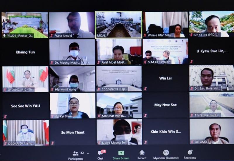 ကုလသမဂ္ဂ စားနပ်ရိက္ခာနှင့်စိုက်ပျိုးရေးအဖွဲ့ (FAO)၊ မြန်မာနိုင်ငံ FAO-SLM စီမံကိန်းနှင့် ရေဆင်းစိုက်ပျိုးရေးတက္ကသိုလ်၊ အမျိုးသားအဆင့် ရာသီဥတုနှင့် သဟဇာတဖြစ်သော စိုက်ပျိုးရေးဗဟိုဌာန (NCSA Center) တို့ ပူးပေါင်းကျင်းပသည့် တတိယအကြိမ် အလုပ်ရုံဆွေးနွေးပွဲနှင့် ရာသီဥတုဒဏ်ခံနိုင်ရည်ရှိသော လူမှုအဝန်းအဝိုင်းအတွက် တီထွင်ဆန်းသစ်သည့် နည်းလမ်းများဆိုင်ရာ စာတမ်းဖတ်ပွဲကို ယနေ့နံနက်ပိုင်းက ဗီဒီယိုကွန်ဖရင့်စနစ်ဖြင့် ကျင်းပသည်။