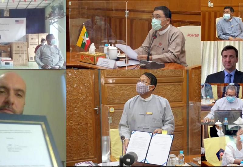 လားရှိုးမူးယစ်ဆေးဖြတ်ပြီးသူများ ပြန်လည်ထူထောင်ရေးစခန်းတွင် ဖွင့်လှစ်မည့် အမျိုးသမီးများ ပြန်လည်ထူထောင်ရေးသင်တန်းအတွက် လိုအပ်သောအထောက်အကူပြု ပစ္စည်းများကို မြန်မာနိုင်ငံဆိုင်ရာ အမေရိကန်နိုင်ငံသံအမတ်ကြီးက လူမှုဝန်ထမ်း၊ ကယ်ဆယ်ရေးနှင့် ပြန်လည်နေရာချထားရေးဝန်ကြီးဌာနသို့ လွှဲပြောင်းပေးအပ်ပွဲအခမ်းအနားကို ယနေ့မွန်းလွဲပိုင်း၌ အဆိုပါဝန်ကြီးဌာနတွင် Virtual Meeting ဖြင့် ကျင်းပသည်။