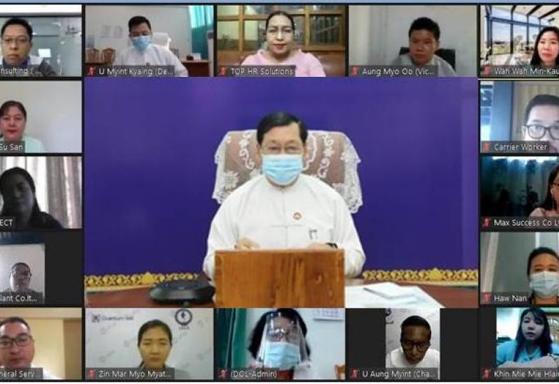 ပြည်တွင်းအလုပ်အကိုင်ဆိုင်ရာ ဝန်ဆောင်မှုလုပ်ငန်းရှင် များအသင်း၏ အလုပ်အမှု ဆောင်များ၊ ပြည်တွင်း အလုပ်အကိုင်ရှာဖွေရေး အကျိုးဆောင် အေဂျင်စီများမှ မန်နေးဂျင်း ဒါရိုက်တာများနှင့် ပြည်တွင်းအလုပ်အကိုင်များကို New Nomal နှင့်အညီ ပိုမိုလျှင်မြန် ထိရောက်စွာ ရှာဖွေပေးနိုင်ရေး ဆွေးနွေးပွဲအခမ်းအနားကို ယနေ့နံနက် ၁၀ နာရီတွင် နေပြည်တော်ရှိ အလုပ်သမား၊ လူဝင်မှုကြီးကြပ်ရေးနှင့် ပြည်သူ့အင်အားဝန်ကြီးဌာန အစည်း အဝေးခန်းမ၌ Video Conferencing စနစ်ဖြင့် ကျင်းပသည်။