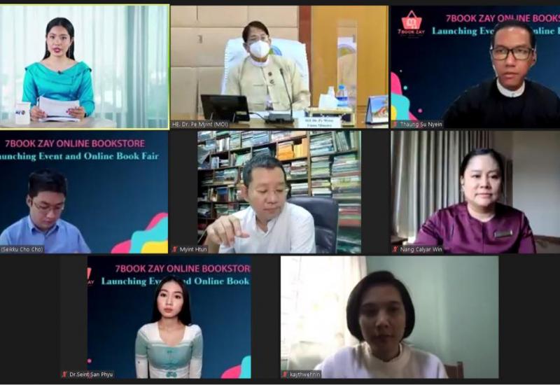 စာပေထုတ်ဝေဖြန့်ချိရေးကဏ္ဍအား ဒီဂျစ်တယ်စီးပွားရေး လုပ်ငန်းသစ်တစ်ခုအဖြစ် ပိုမိုတိုးတက်အောင်မြင်စေရေးနှင့် ပံ့ပိုးကူညီပေးနိုင်ရေး အတွက် 7 Book Zay Online Bookstore (7BookZay.com) မိတ်ဆက်ပွဲ အခမ်းအနားကို ယနေ့နံနက်(၁၀)နာရီက Virtual စနစ်ဖြင့် ကျင်းပရာ ပြန်ကြားရေးဝန်ကြီးဌာန၊ ပြည်ထောင်စုဝန်ကြီး ဒေါက်တာဖေမြင့် တက်ရောက်ခဲ့သည်။