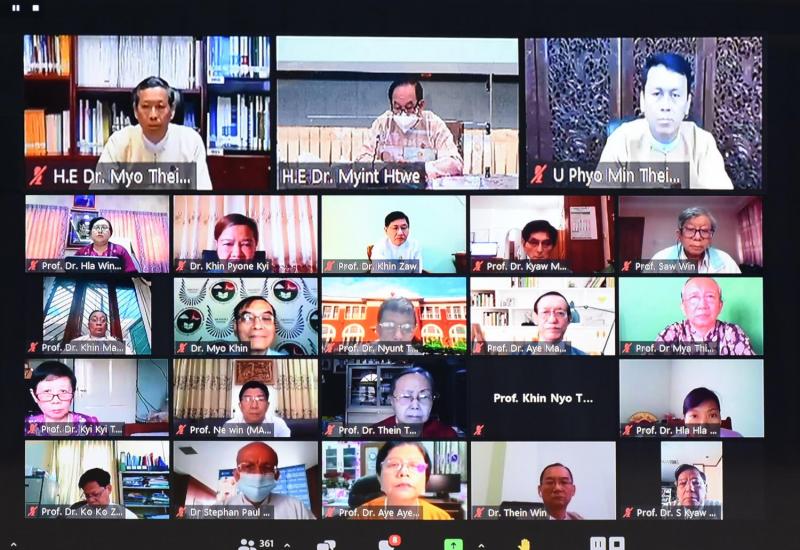 (၄၉) ကြိမ်မြောက် မြန်မာနိုင်ငံ ကျန်းမာရေးဆိုင်ရာ သုတေသနညီလာခံဖွင့်ပွဲ အခမ်း အနားကို ယနေ့နံနက်ပိုင်းတွင် ကျန်းမာရေးနှင့် အားကစားဝန်ကြီးဌာန၌ ဗီဒီယိုကွန်ဖရင့်စနစ် ဖြင့်ကျင်းပရာ ကျန်းမာရေးနှင့်အားကစားဝန်ကြီးဌာန ပြည်ထောင်စုဝန်ကြီး ဒေါက်တာ မြင့်ထွေး တက်ရောက် အဖွင့်အမှာစကား ပြောကြားသည်။