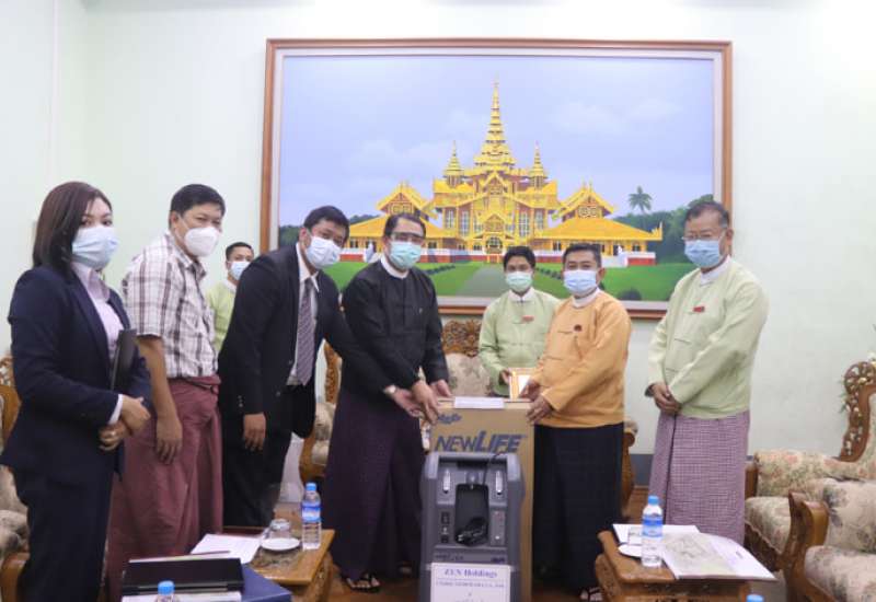 ပဲခူးတိုင်းဒေသကြီးအစိုးရအဖွဲ့ရုံး၊ ဝန်ကြီးချုပ်၏ ဧည့်ခန်းမသို့ ဒီဇင်ဘာ ၁၀ ရက် ညနေ ၆ နာရီက ZEN Holdings, UNIHO TOMOSADA Co., Ltd မှ Oxygen Concentrator (၂)လုံး လာရောက် လှူဒါန်းခဲ့သည်။