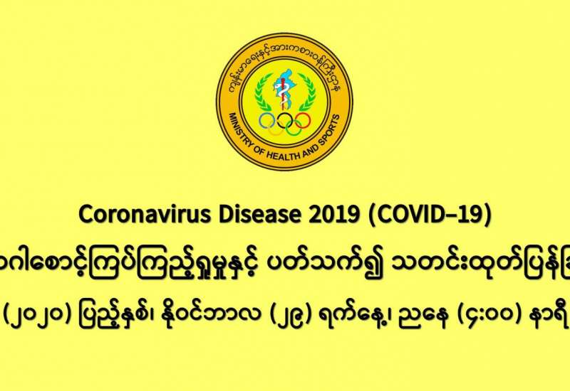 နိုဝင်ဘာလ ၂၈ ရက်နေ့တွင် ကျန်းမာရေးနှင့် အားကစား ဝန်ကြီးဌာန၏ ထုတ်ပြန်ကြေညာချက်အရ ၂၄ နာရီအတွင်း ဓာတ်ခွဲစစ်ဆေးသူ ၁၇၉၂၄ ဦးအနက် ရောဂါပိုးရှိကြောင်း တွေ့ရှိ သည့် ဓာတ်ခွဲအတည်ပြုလူနာ ၁၃၄၄ ဦးရှိ၏။ ၂၄ နာရီ အတွင်း ကိုဗစ်ရောဂါကြောင့် တိမ်းပါးဆုံးရှုံးရသူ ၂၂ ဦးရှိ၏။ ကိုဗစ်စတင်ဝင်ရောက်ချိန်ကစ ဓာတ်ခွဲအတည်ပြုလူနာ စုစုပေါင်း မှာ ရှစ်သောင်းရှစ်ထောင်နီးပါး ရှိသည်။ ရောဂါပျောက်ကင်းကာ ဆေးရုံမှ ဆင်းခွင့်ရသူ ခြောက်သောင်းခုနစ်ထောင်ကျော် ရှိနေ သည်။ စစ်ဆေးသူဦးရေနှင့် ရောဂါပိုးတွေ့ရှိသည်ဟု ဓာတ်ခွဲ အတည်ပြုထားသူဦးရေအချိုးမှာ ရာခိုင်နှုန်းအားဖြင့် ၇ ဒသမ ၅ ရာခိုင်နှုန်းနီးပါးဖြစ်၏။ ထိုအချိုး ရာခိုင်နှုန်း ၅ရာခိုင်နှုန်းအောက် သို့ရောက်အောင် အားလုံးသော ကျန်းမာရေးဝန်ထမ်းများက ကြိုးပမ်းနေကြခြင်းဖြစ်သည်။ မြန်မာနိုင်ငံ၏ အထွေထွေအနေ အထားကို ဆန်းစစ်ပြီး ရောဂါပြန့်ပွားမှုကို လျှော့ချနိုင်ရန်နှင့် လုံးဝကင်းရှင်းရန်ကို အစွမ်းကုန်ကြိုးပမ်းနေကြခြင်းဖြစ်၏။