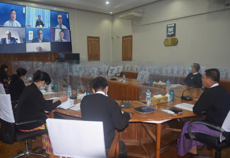 ကိုဗစ်-၁၉ ကာကွယ်ဆေး ပေါ်ပေါက် ရရှိပါက စနစ်တကျ ထိုးနှံပေးနိုင်ရေး ကြိုတင် ပြင်ဆင်ထားရှိမှု ဗဟိုအဆင့် အစည်းအဝေးကို နံနက်ပိုင်းတွင် ဗီဒီယိုကွင်ဖရင့်စနစ်ဖြင့် ကျင်းပသည်။