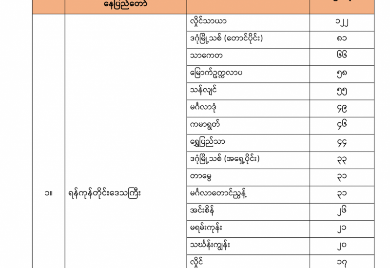 (၃-၁၁-၂၀၂၀) ရက်နေ့ ဓာတ်ခွဲစစ်ဆေးမှုများတွင် တွေ့ရှိခဲ့သော ဓာတ်ခွဲ အတည်ပြုလူနာ (၁,၁၉၇) ဦး၏ မြို့နယ်အလိုက် တွေ့ရှိရမှု အခြေအနေ မှာ အောက်ပါအတိုင်း ဖြစ်ပါသည်။