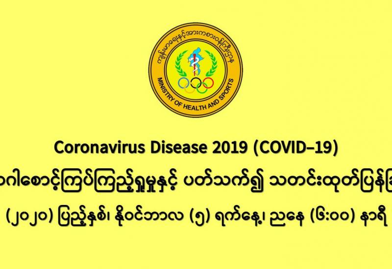 (၄-၁၁-၂၀၂၀) ရက်နေ့၊ ည (၈:၀၀) နာရီမှ (၅-၁၁-၂၀၂၀) ရက်နေ့၊ ည (၈:၀၀) နာရီ အတွင်း ဓာတ်ခွဲနမူနာ စုစုပေါင်း (၁၃,၈၆၀) ခုအား စစ်ဆေးပြီးစီးခဲ့ရာ COVID-19 ရောဂါ ဓာတ်ခွဲအတည်ပြု လူနာသစ် (၉၉၅)ဦး တွေ့ရှိရပါသည်။