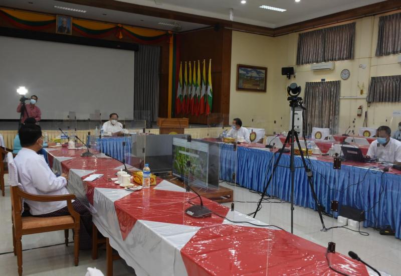 ကိုဗစ်-၁၉ ဖြစ်ပွားမှုနှင့် ရောဂါကာကွယ်၊ ထိန်းချုပ်၊ ကုသရေးလုပ်ငန်းများ ဆောင်ရွက် နေမှုအခြေ အနေများ အပတ်စဉ် တင်ပြ ဆွေးနွေးပွဲကို ယနေ့ နံနက်ပိုင်းတွင် ကျန်းမာရေးနှင့် အားကစားဝန်ကြီးဌာန အစည်းအဝေးခန်းမ၌ ကျင်းပသည်။
