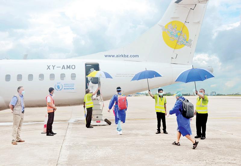 ကမ္ဘာ့စားနပ်ရိက္ခာအစီအစဉ် (WFP)၏ စီစဉ်မှုဖြင့် မြန်မာနိုင်ငံအတွင်း ကိုဗစ်-၁၉ ရောဂါ တုံ့ပြန်မှုနှင့် လူသားချင်းစာနာထောက်ထားမှု လုပ်ငန်းများကို ကူညီပံ့ပိုးနိုင်ရန် လူသားချင်း စာနာထောက်ထားမှုဆိုင်ရာ ပြည်တွင်း လေကြောင်းခရီးစဉ် (ပထမအကြိမ်) အဖြစ် ရန်ကုန်-စစ်တွေခရီးစဉ်ကို ယနေ့နံနက်ပိုင်းက စတင်ပြေးဆွဲသည်။
