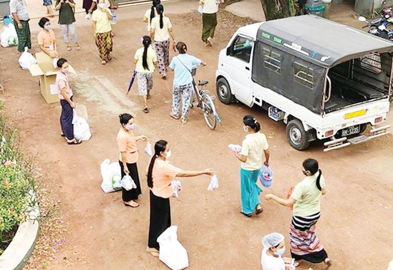 ပဲခူးမြို့ ဗုဒ္ဓအသံဓမ္မဗိမာန်တွင် ဖွင့်လှစ်ထားရှိသည့် ပဲခူးတိုင်းဒေသကြီး COVID-19ရောဂါ ထိန်းချုပ် ရေးနှင့် အရေးပေါ်တုန့်ပြန်ရေး ကော်မတီအဖွဲ့ရုံးသို့ စက်တင်ဘာ ၁၄ရက် နံနက် ၉နာရီခွဲက ကမ္ဘောဇ ဘဏ်မိသားစုမှ ပဲခူးမြို့ရှိပြည်သူများအတွက်