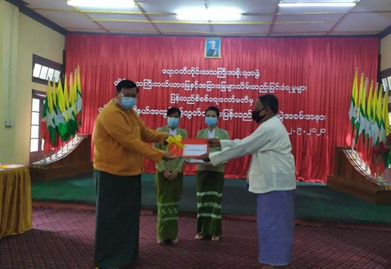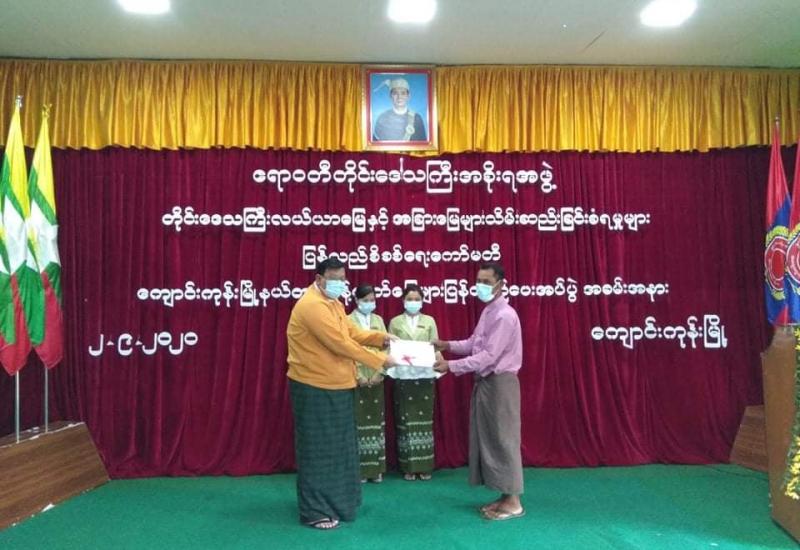 ကိုဗစ်-၁၉ စီးပွားရေးကုစားမှု အစီအစဉ် (COVID-19 Economic Relief Plan-CERP) အရ ရခိုင် ပြည်နယ်အတွင်းရှိ IDP တိုက်ပွဲရှောင် စခန်းများမှ နေရပ်စွန့်ခွာအိမ်ထောင်စု များအား စားသောက်ကုန်ငါးမျိုး ဝယ်ယူရန် အိမ်ထောင်စုတစ်စုလျှင် ငွေကျပ် ၄၀၀၀ဝ နှုန်းဖြင့် ထောက်ပံ့ နိုင်ရေးအတွက် လူမှုဝန်ထမ်း၊ ကယ်ဆယ်ရေးနှင့် ပြန်လည်နေရာချထားရေးဝန်ကြီးဌာန ပြည်ထောင်စုဝန်ကြီး က ရခိုင်ပြည်နယ်ဝန်ကြီးချုပ် ဦးဆောင်သည့် ရခိုင်ပြည်နယ် အစိုးရအဖွဲ့သို့ ထောက်ပံ့ငွေလွှဲပြောင်း ပေးအပ်ပွဲအခမ်းအနားကို ဩဂုတ် ၂၁ ရက်တွင် Virtual Meeting ဖြင့် ကျင်းပ ခဲ့သည်။