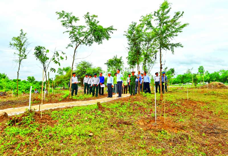 နေပြည်တော်ဥတ္တရသီရိမြို့နယ်ရှိ သစ်တောသုတေသနစခန်း အမှတ် (၅) မိုးစွေ၌ သင်တန်းသားအိပ်ဆောင်များ ဆောက်လုပ်ပြီးစီးမှုအခြေအနေနှင့် ပျိုးဥယျာဉ်အတွင်း ပျိုးပင်များ ပျိုးထောင်ထားရှိမှုအခြေအနေကို ယနေ့နံနက်ပိုင်းတွင် သယံဇာတနှင့်သဘာဝပတ်ဝန်းကျင်ထိန်းသိမ်းရေးဝန်ကြီးဌာန ပြည်ထောင်စုဝန်ကြီး ဦးခင်မောင်ရီနှင့် တာဝန်ရှိသူများက ကြည့်ရှုစစ်ဆေးသည်။