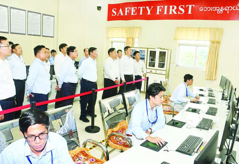လျှပ်စစ်နှင့်စွမ်းအင်ဖွံ့ဖြိုးရေးကော်မရှင်ဥက္ကဋ္ဌ နိုင်ငံတော်သမ္မတရုံးဝန်ကြီးဌာန (၁) ပြည်ထောင်စုဝန်ကြီး ဦးတင်အောင်စန်းသည် ယနေ့ နံနက်ပိုင်းတွင် ရန်ကုန်မြို့အတွင်းရှိ သဘာဝဓာတ်ငွေ့နှင့် စွန့်ပစ်အပူသုံးဓာတ်အားပေးစက်ရုံများသို့ သွားရောက်ကြည့်ရှုစစ်ဆေးသည်။